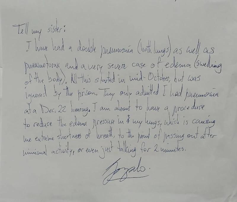 In a handwritten note, Lira described his health ordeal, including double pneumonia, pneumothorax, and severe oedema. This letter is believed to be his last written correspondence. It detailed the neglect he faced in prison. Despite these alarming symptoms, proper medical attention was delayed until too late.