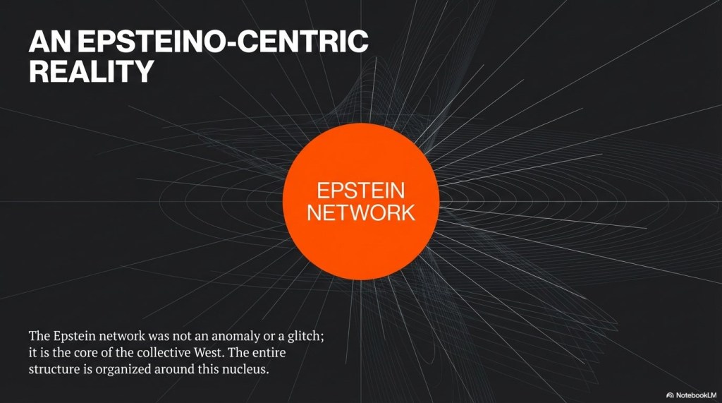 The Epsteino-Centric Model: A Sociopolitical Analysis of the Western Power Core. In this article, Alexander Dugin interprets Western power as a gravitational system. It is organized around a hidden nucleus. All elite trajectories inevitably converge toward this nucleus.