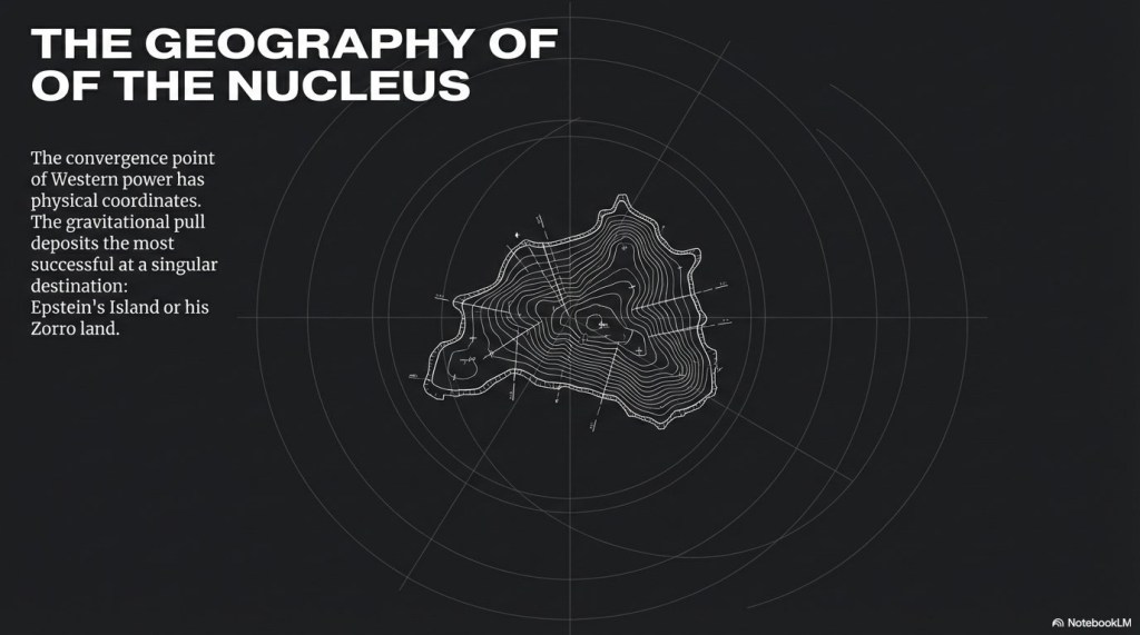 This sociopolitical analysis identifies a Western power architecture that is far more centralized and cohesive than public narratives suggest. We analyze the relationship between the nucleus (Epstein’s Island/Zorro land) and the gravitational layers of social institutions. We also consider the trajectory of elite careers. Through this synthesis, we find a system of total convergence.